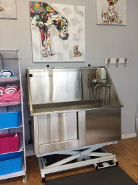 Nous utilisons seulement des produits de haute qualité et nous consacrons le temps nécessaire à chaque animal afin de lui assurer la meilleure expérience de toilettage. Le salon est doté d’équipement moderne tel qu’une baignoire d’élévation électrique en acier inoxydable afin que les grands animaux puissent monter et descendre avec facilité et en toute sécurité.